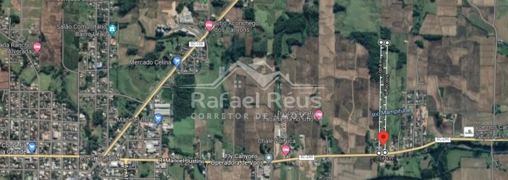 Localizado no Bairro Rio Canoa em Praia Grande - SC, as Margens da Rod. SC 290, á 1,7 km do Centro da Cidade, próximo a todo comercio. Trata-se de uma área rural ao qual possui uma Casa mista e uma área de terra aos fundos, com açude, 100% aproveitável. Área excelente para ponto comercial.