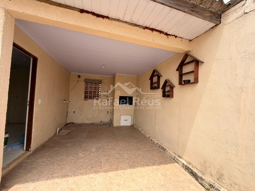 O imóvel conta com 2 dormitórios, sala, cozinha e garagem com churrasqueira.